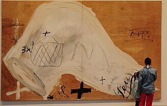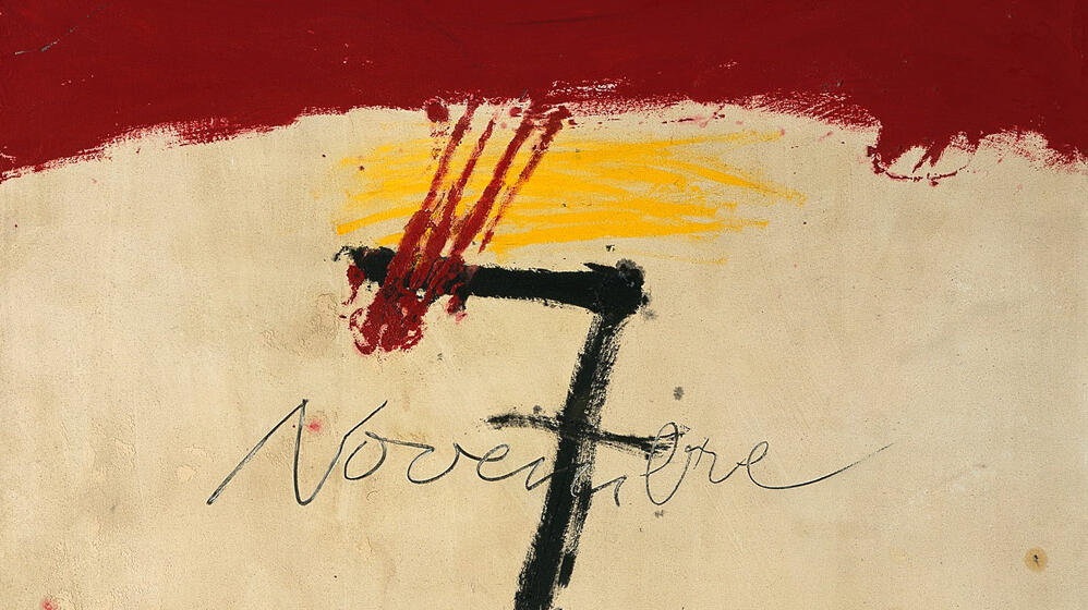 With a scholarship from the French Institute in Barcelona, between 1950 and 1951 Tàpies lived in Paris, where he met Picasso and came into contact with the international avant-garde movements.From 1953 onwards, there was an important turning point in his career, moving towards a material expression that would transcend his apparent link with abstraction. This turn allowed him to subvert the traditional conception of the pictorial surface, incorporating dense textures similar to those on a wall or fence, to which he applied incisions, marks, footprints, scribbles, perforations, etc. The imprint of the material trace caused by the passage of time, visible in the reality of all types of walls, gives these paintings an almost geological, “wall” appearance, which has degradation and deterioration as a common denominator. The critical reception of these works produced in the 1950s soon placed him in a prominent place in the national and international avant-garde.A series of solo and group exhibitions, as well as a multitude of awards, confirmed the widespread recognition of his work, which was shown in events first-rate institutions such as the Carnegie International, the Venice Biennale, the São Paulo Biennale, the Kassel documenta, or institutions such as the MoMA and the Guggenheim in New York.Throughout the 1960s, Tàpies' production of material paintings took a turn with the incorporation of lements of external reality that responded to his concerns about broadening the notion of realism. The action of adding recognizable objects, often used and banal, entailed an approximation to the real and concrete that denoted a step beyond in terms of representation. It is at this moment that the question of the human body became increasingly important in his work, becoming evident in the explicit representation of certain parts of it. Tàpies explored visual ambiguity by forming or deforming what was represented,without the matter ceasing to acquire the form of that to which it is associated, as in Matèria en forma de peu [Matter in the Shape of a Foot, 1965]. The paintings do not “re-present” anything, because there is no separation between subject and object, but rather what is important in them is their becoming.Tàpies' political commitment to Francoism became increasingly explicit. For example, in 1966 the artist was arrested after taking part in a clandestine meeting of students and intellectuals at the Capuchin Convent in Sarrià (Barcelona), which had been convened to discuss the creation of the first democratic university union, and in 1970 he attended a clandestine assembly at the Montserrat monastery to protest against the so-called Burgos Trial, through which a military court judged opponents of General Franco's regime. His political involvement against the dictatorship was personal and artistic. According to the artist himself: "the social and political situation in my country has always had an impact on my work.I think that has to do with the fact that the conception of art for art's sake doesn't appeal to me. It is valid. I have always maintained a utilitarian attitude towards art.” This is evident, as if they were history paintings, in works such as A la memòria de Salvador Puig Antich [In memory of Salvador Puig Antich, 1974], a tribute to the young anarchist executed by the regime.In the early 1980s, his painting showed slight formal and conceptual changes that pointed to a refinement of material weight, without such a distinctive element as the “wall” ceasing to be present. The formats gained size and the strokes extended over larger surfaces, making the scale contribute to the more sedate character of the works, with hardly any variations in the artist’s recognizable repertoire. It was at this stage that the use of varnish became prominent. This golden-hued material summons the unpredictable and chance, playing with transparency, disorder, stains and formlessness.He fuses almost figurative forms that later dissolve into abstractions of disturbing ambiguity. The use of this material was accompanied by a growing interest in oriental culture and art. Works such as Celebració de la mel [Celebration of Honey, 1989] serve as a paradigmatic example of both aspects. In the last two decades of his life, Antoni Tàpies' work became imbued with a certain feeling of melancholy. The artist continued to enjoy great recognition, but his work was dominated by despondency and constant references to death, illness and pain. Faced with the awareness of the proximity of death, Tàpies found ways to live with the certainty of the passage of time, but not to victimize himself or abandon himself. The paintings from these mature years do not lose that uncomfortable indeterminacy between figuration and its dissolution, but rather evoke erasure and oblivion. They are memories and experiences that form part of the memory of his own gestures.